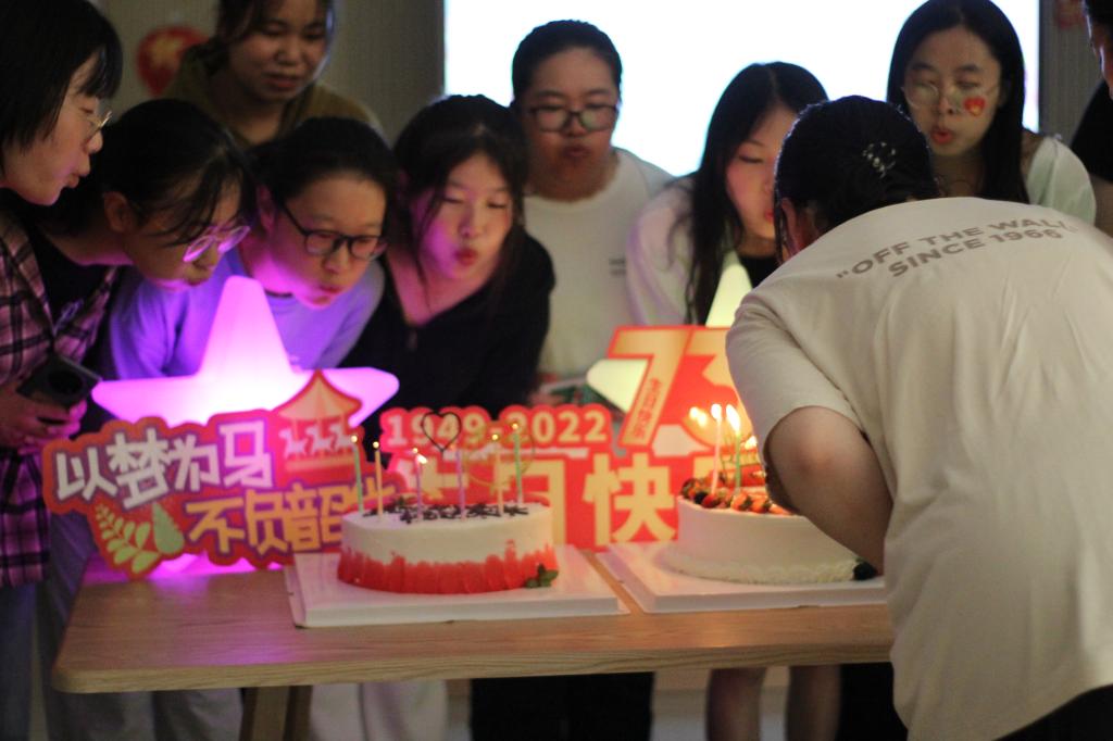 伴随着缓缓动听的《今天是你的生日,中国》,活动迎来了生日会的主人公——共同出生于10月1日的21名同学,也迎来了他们所在班级辅导员及好同学好朋友的集体祝福。今天参与生日会的22护理3班苏浩然同学激动的和大家说:“哪有什么岁月静好,不过是有人替你负重前行!我是22级的新同学,学校丰富有趣的活动让我难忘,我为能和祖国一起过生日而感到自豪和幸福。”欢歌笑语,苏护学子们为祖国73周年华诞镀上一抹亮色。