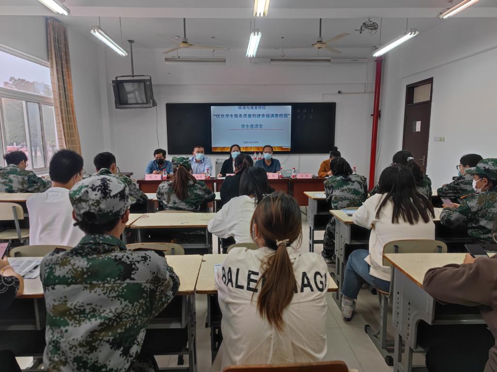 为深入贯彻落实学校第二次党代会精神,充分发挥后勤协同育人效应,打造优质校园生活环境,切实提高学生获得感和幸福感,9月27日—9月29日,后勤保障处组织人员分成四个调研组先后走进护理与助产学院等四个二级学院,召开以“倾听声音 解决问题——保障服务零距离”为主题的学生面对面交流座谈会。后勤保障处各调研组、各二级学院学工部门负责人、相关负责老师及由各班生活委员组成的学生代表参加了座谈会。