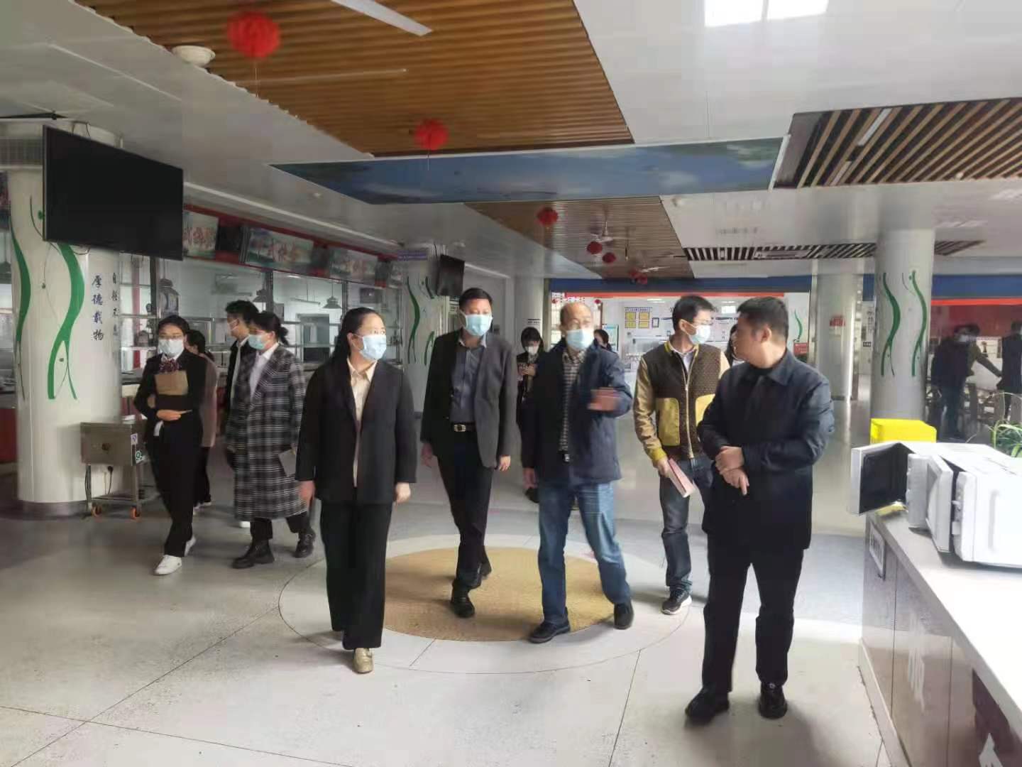 在beat365后勤保障处人员的引领下,来访人员先后参观了食堂楼就餐大厅、后厨、仓库等区域。