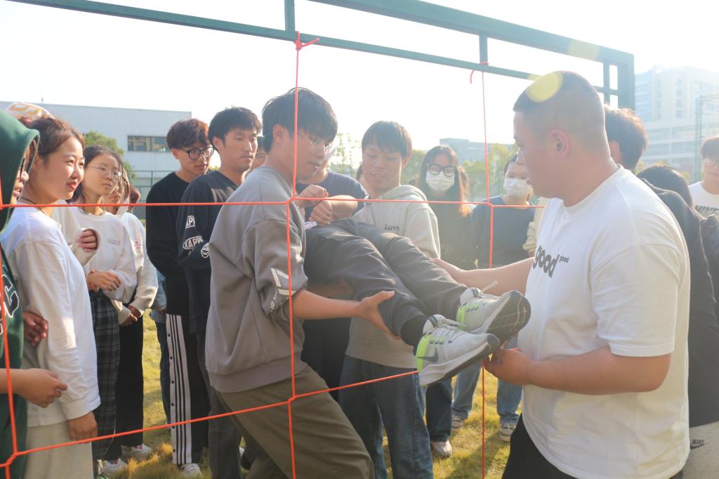 活动围绕“缘聚你我 携手共进”的主题展开,共分为“红旗”队、“啊对对”队,主要通过“同心击鼓”、“移花接木”、“胜利墙”、“穿越电网”等5个富有趣味和挑战性的游戏让学生干部们体验、领悟、收获合作成功带来的喜悦,增进彼此的情谊。活动初,由于互相间的陌生感,每组都碰到了各种各样的问题,在“同心击鼓”中“红旗”队因协作性不强最初不能得分。但随着游戏的进行,同学们的生疏感很快被打破,欢声笑语不断。游戏激烈之处,加油声、鼓掌声、欢笑声此起彼伏,每个人的脸上都洋溢着开心愉快的笑容。
