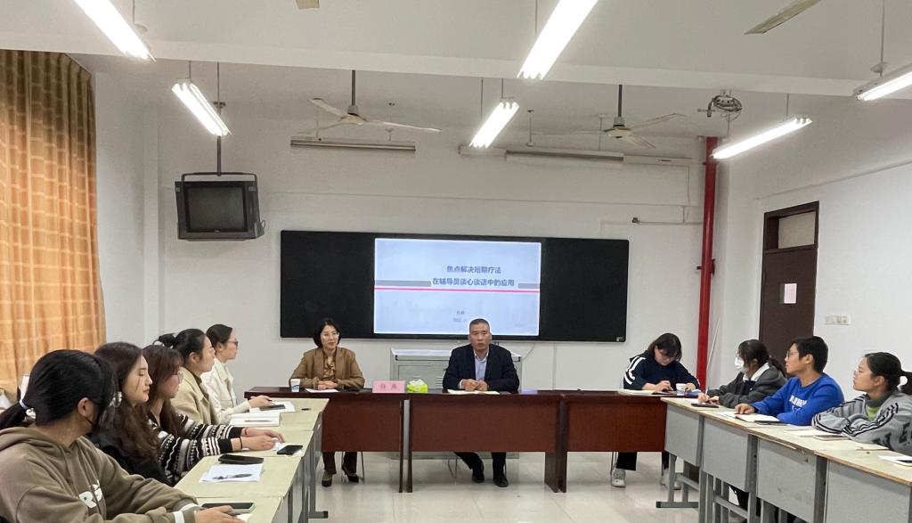 谈心谈话是了解学生心理状态的主要途径,为提升辅导员、班主任、心理委员的谈心谈话能力,增强谈话效果,11月11日,“心语星苑”辅导员工作室邀请淮阴师范学院学工部副部长、心理健康教育中心主任任燕副研究员在黄河路校区教学楼115教室,面向工作室成员、辅导员、班主任、新生心理委开设“焦点解决短期疗法在谈心谈话中的应用”讲座。