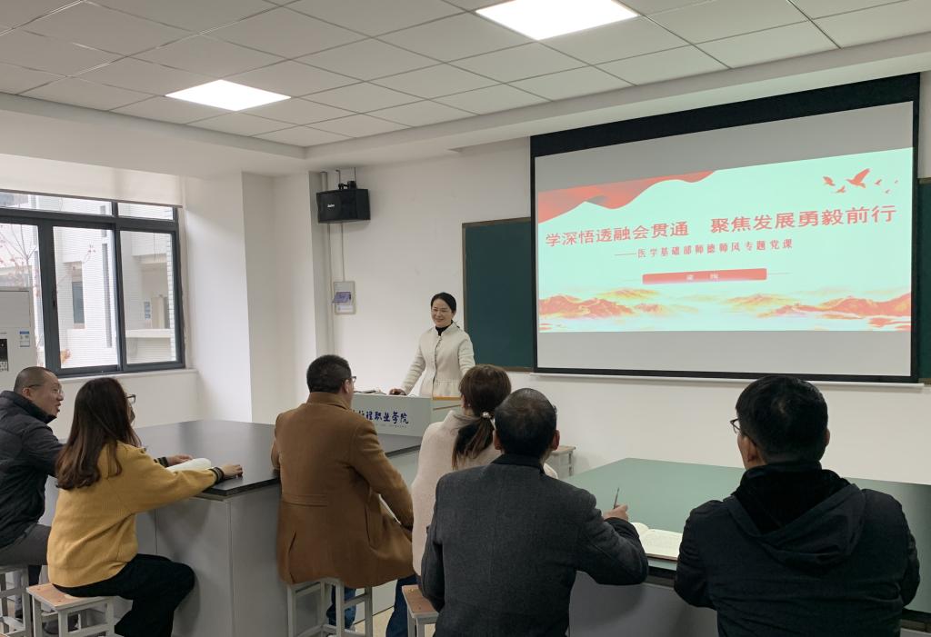 11月18日,为进一步学习宣传贯彻党的二十大精神,落实全面从严治党主体责任,医学基础部党总支开展师德师风专题党课,医学基础部党总支全体党员同志参加活动。