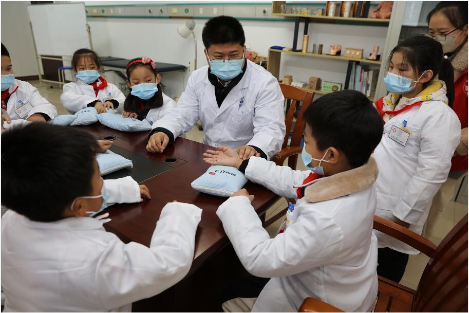 为贯彻全国教育大会和《国家职业教育改革实施方案》(国发〔2019〕4号)精神,推动职业教育资源向基础教育开放,提升中小学综合实践活动课程、劳动与技术课程学习实施水平,促进普职融通,深入实施素质教育,11月16日下午,健康与康复学院党总支开展了“开展职业体验教育 促进卫生健康事业发展”主题党日活动。此次活动,健康与康复职业体验中心接待了来自北京路小学的师生近百人。健康与康复学院党总支副书记王朝、全体党员参加了此次活动。