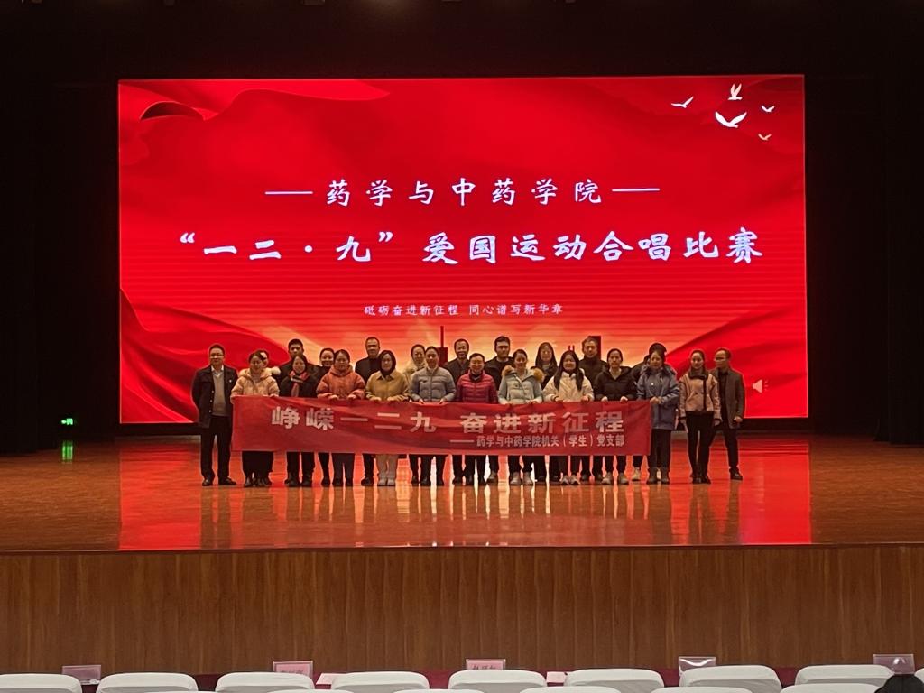 首先,在校大礼堂参加了药学与中药学院举行的“砥砺奋进新征程 同心谱写新篇章”纪念一二·九爱国运动大合唱活动,党支部全体党员共同演唱了歌曲《歌唱祖国》,以歌抒怀、以歌咏情、以歌言志,在娓娓动听的歌声中接受着爱国爱党的精神洗礼。之后,各位党员同志担任合唱比赛评委,在欣赏学生们铿锵有力歌声的同时,为各个班级的优异表现打出了自己的评分。