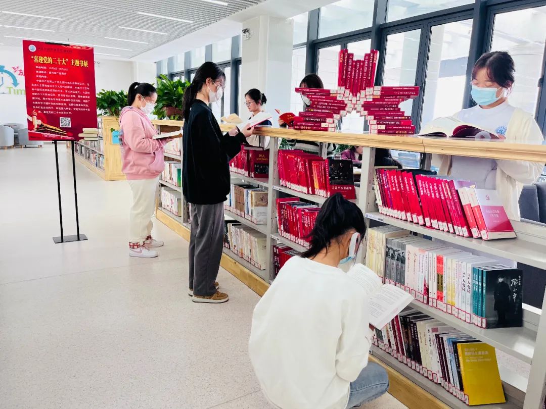 喜迎党的二十大,书香润初心。10月初,在党的二十大召开之际,图书馆在二楼大厅举办了“喜迎党的二十大”主题书展,为党的二十大胜利召开营造良好的舆论环境和文化氛围。