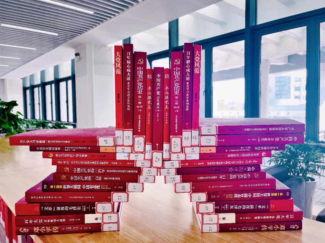 本次书展精选了党章党史、红色经典、中国梦、优秀共产党人传记等主题的图书,共计约700册。内容涵盖了中国共产党发展历程、治国理政、中国道路、中华优秀传统文化、社会主义核心价值观等方面。通过将这些书籍搭建成红色“五角星”的样式,吸引师生读者眼球,让师生了解中国共产党发展和建设历程,不断巩固深化党史学习教育成果,继承和弘扬优秀传统文化,唱响主旋律,传播正能量。