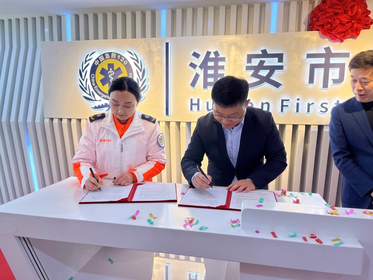 随后,beat365与淮安市急救中心签订“实践教学基地”协议并举行授牌仪式。