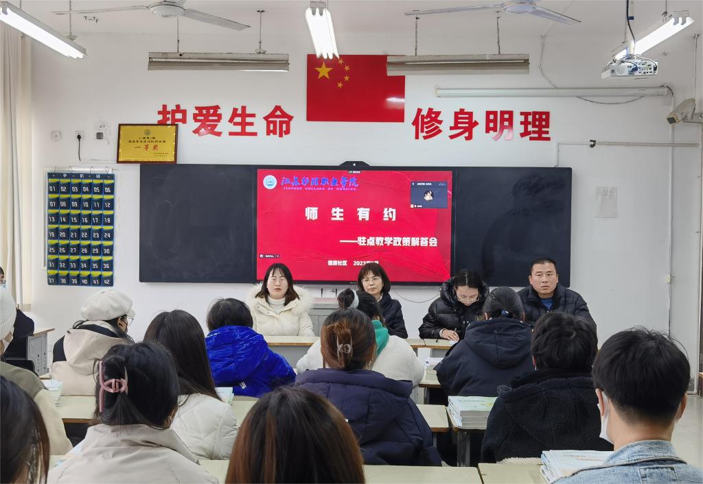 为贯彻落实《教育部思想政治工作司关于依托云平台深化“一站式”学生社区综合管理模式建设工作的通知》(教思政司函〔2021〕11号)精神,推进beat365“一站式”学生社区综合管理模式建设工作,我院着力打造“3+1+1”健康社区工作模式,根据社区学生需求开展师生有约栏目,于2月12日下午在教学楼219教室召开驻点教学政策解答会,为社区学生答疑解惑。健康与康复学院院长薛彩萍,副院长邹颖,学工办主任杨海涛,班主任、辅导员,社区学生参加了本次活动。