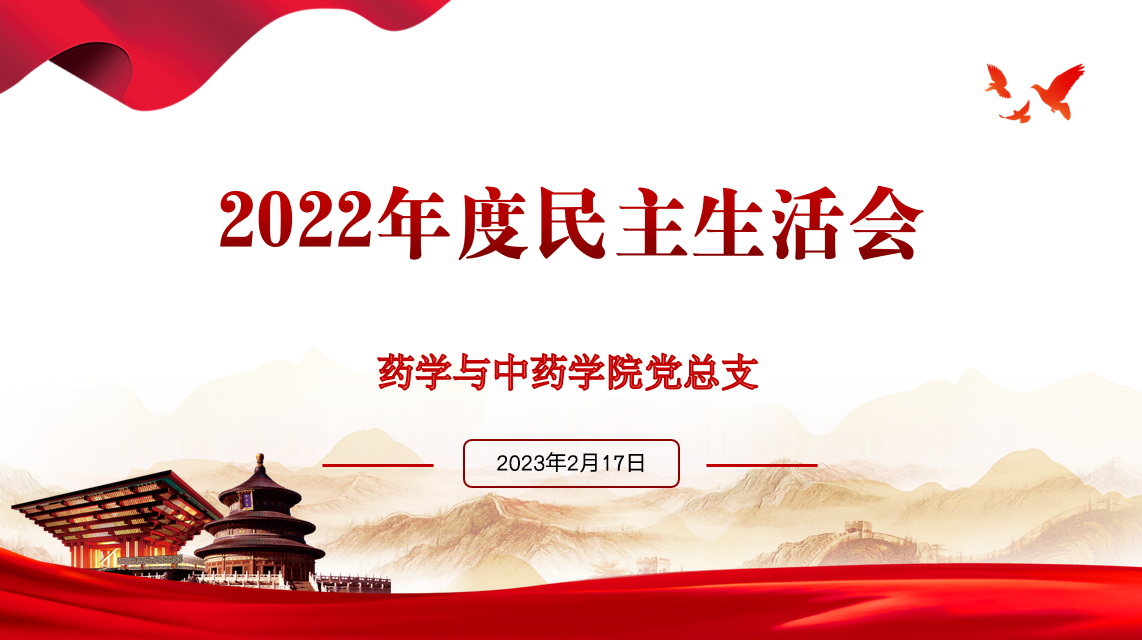 按照学校党委转发的江苏省纪委、省委组织部《转发<中共中央纪委机关 中共中央组织部关于开好2022年度县以上党和国家机关党员领导干部民主生活会的通知>的通知》(苏组通【2022】66号)要求,药学与中药学院于2023年2月17日下午召开2022年度民主生活会。校党委委员、副书记胡海员、药学与中药学院党总支全体委员出席会议,校机关党委书记吴洁列席会议。会议由药学与中药学院党总支副书记韩永红主持。