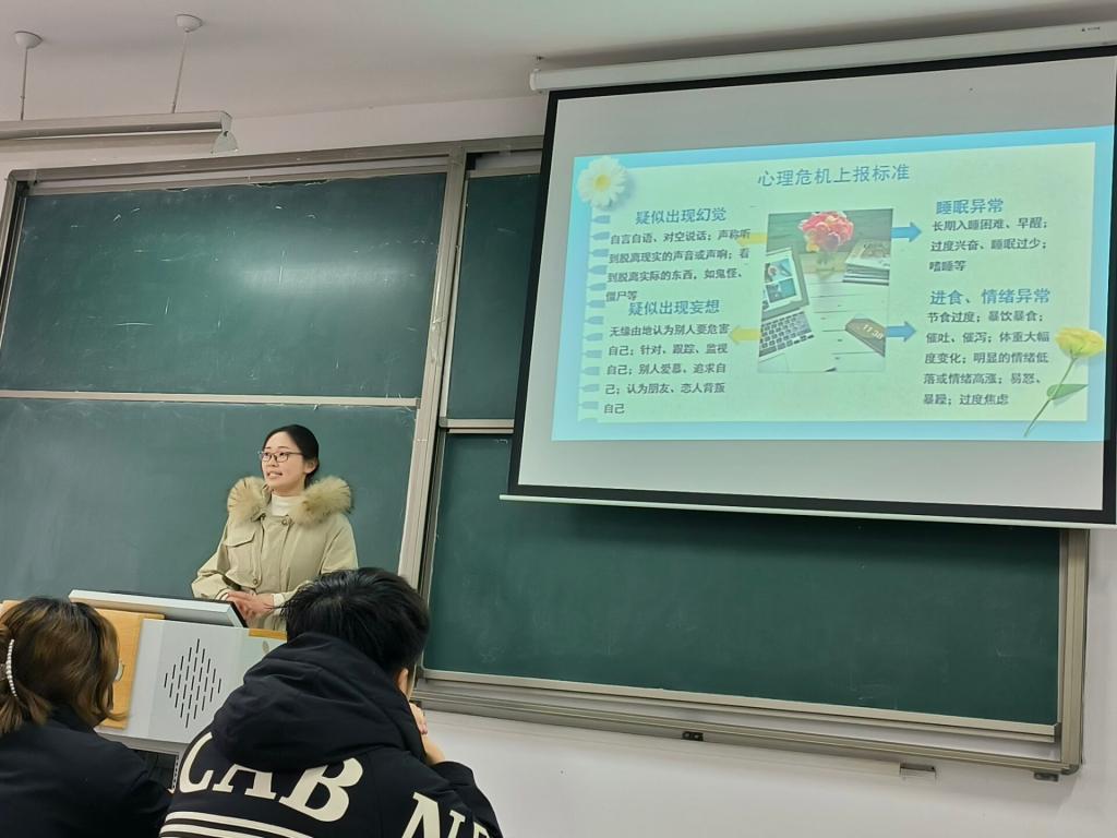 班级心理委员是学校心理健康工作中的中坚力量,有着不可或缺的作用。为提高班级心理委员的心理危机识别与上报能力,有效预防校园心理问题的发生,更好守护学生心理健康,2023年2月22日,健康社区、“心语星苑”辅导员工作室在教学楼102面向在校班级心理委员和主要学生干部开展了心理危机识别与上报培训,培训由杨海涛老师主持,“心语星苑”辅导员工作室成员参加。