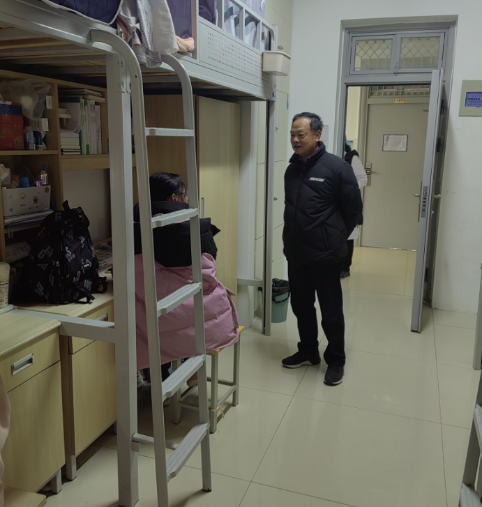 2023年2月24日下午,健康与康复学院关工委副主任易军走访学生宿舍,关爱学生成长。