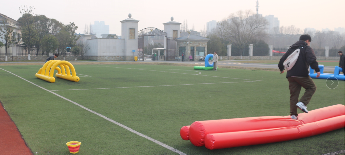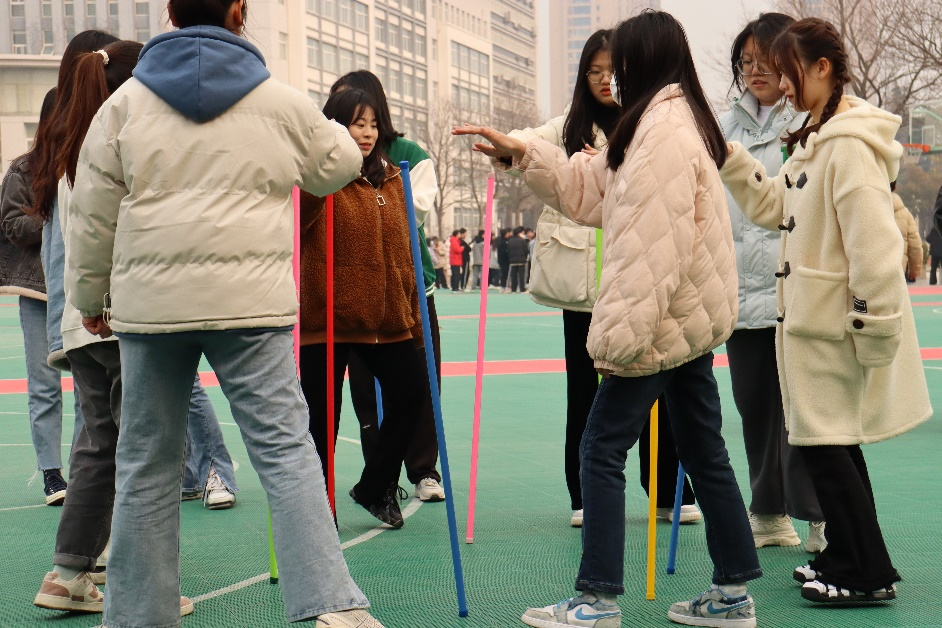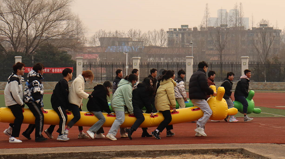 团队项目中,同学们互助前进,向终点进发。“不倒森林”是最激动人心的,它连接的不仅是团结和友爱,更传递了勇气和力量,演绎了奋斗和拼搏;“旱地龙舟”中,同学们欢快的口号,多变的步伐,相互协作、相互鼓劲,将现场气氛推向高潮。