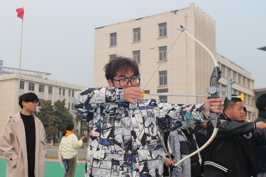 个人项目中,同学们奋力拼搏,争创佳绩。“百步穿杨”中同学们个个聚精会神瞄准靶子,百发百中;“趣味闯关”中口令一发出,同学们如离弦之箭飞了出去,迅速跨过障碍物,展现出灵敏的反应能力,场面热闹激昂,精彩纷呈;“盲人足球”通过队友的提示,两人相互配合,将足球踢向终点。