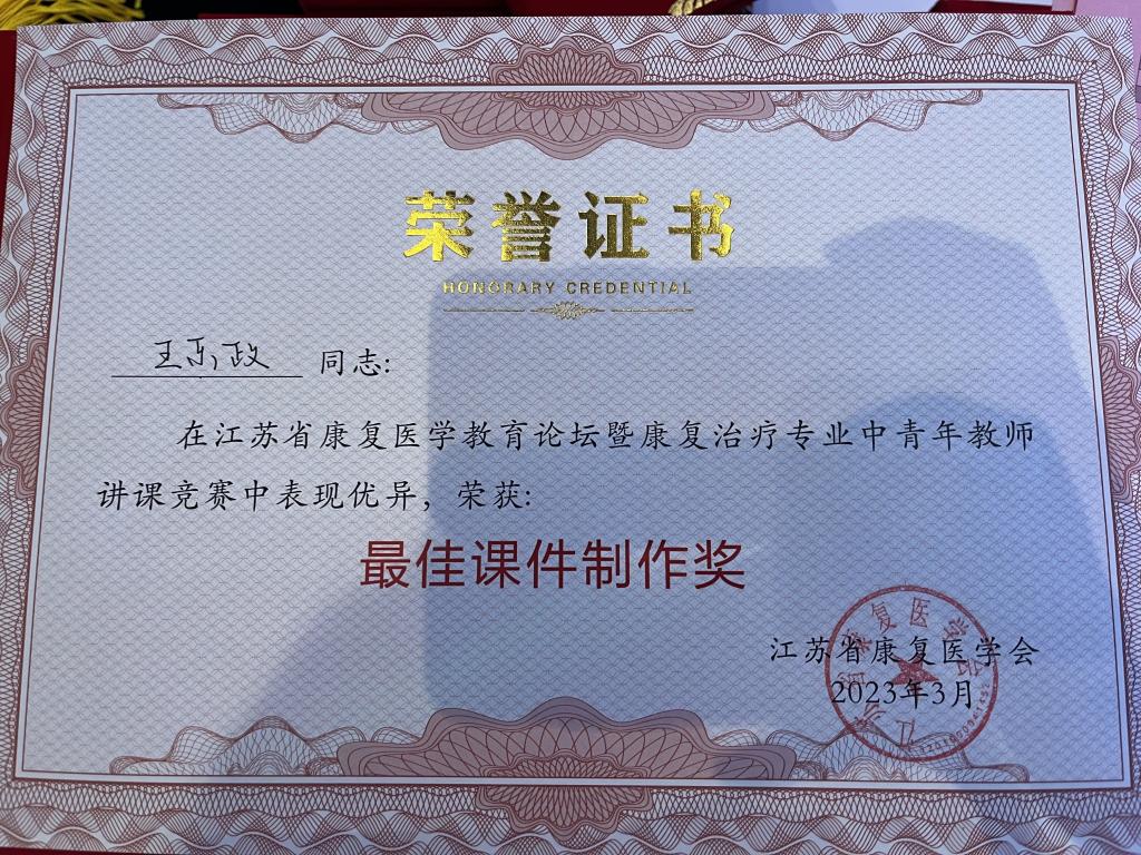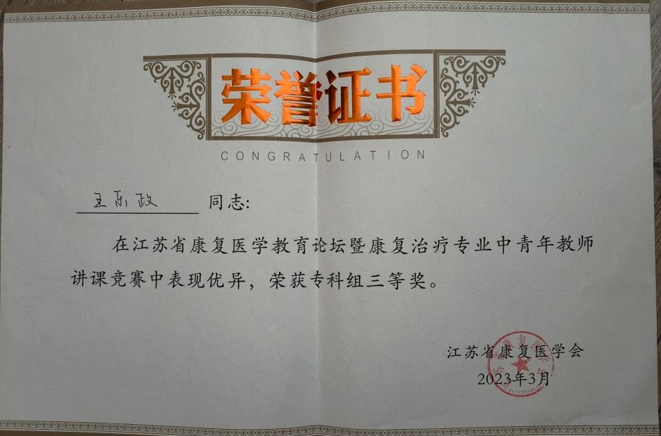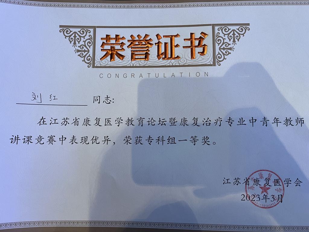 3月4日下午,江苏省康复医学会首次举办的医学教育论坛暨康复治疗专业中青年教师讲课竞赛在南京举行,健康与康复学院派出两位老师代表学校参赛,其中刘红老师喜获专科组一等奖,王乐政老师获得三等奖和最佳课件制作奖。