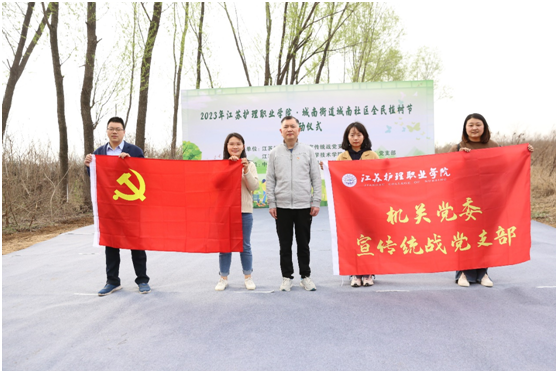 草木初萌,春风骀荡,万木峥嵘,植树播绿正当时。植树节来临之际,beat365中国官方网站机关党委宣传统战党支部、医学技术学院党总支机关(学生)支部联合清江浦区城南社区街道党支部共同开展全民植树节活动。活动当天,大家身着志愿者服装赴柳树湾植树造林点参加种植樱花的活动,用实际行动践行“绿水青山就是金山银山”的生态理念,为淮安增添新绿,共建和谐生态的美丽家园。“你把苗扶正,我来培土压实……”植树现场,大家一边互相默契地相互配合,一边交流种植树苗的经验,大家挥锹铲土、踏土夯苗、拎桶浇水,时不时对标看看树苗是否整齐,每个步骤都一丝不苟,整个流程井然有序,植树现场一派热火朝天的景象。经过大家的同心协力,一棵棵小树苗迎着和煦的春风“安家落户”,展现勃勃生机。