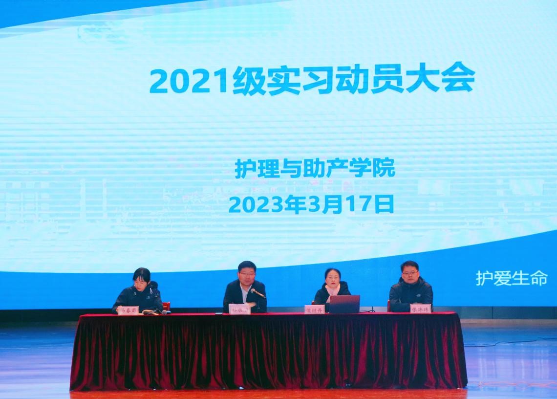 2023年3月17日,护理与助产学院在大礼堂召开2021级护理和助产专业实习动员暨培训会议。学院行政负责人林永滔、党委副书记、副院长侯继丹、副院长汤春菊、学工办主任张玮玮及2021级护理、助产专业全体学生和班主任参加了本次会议。