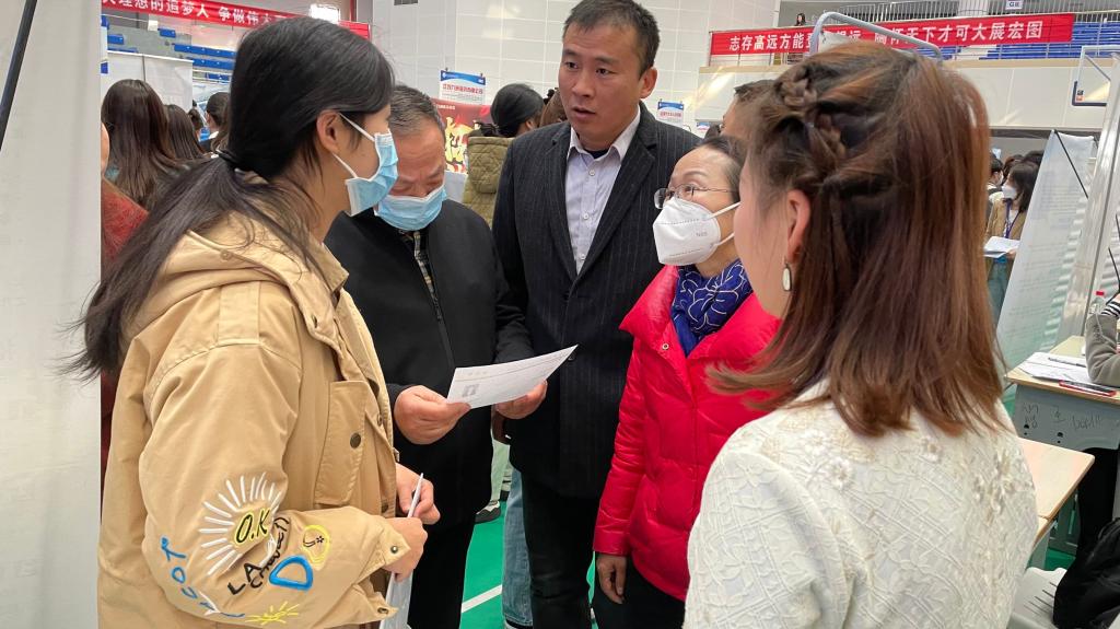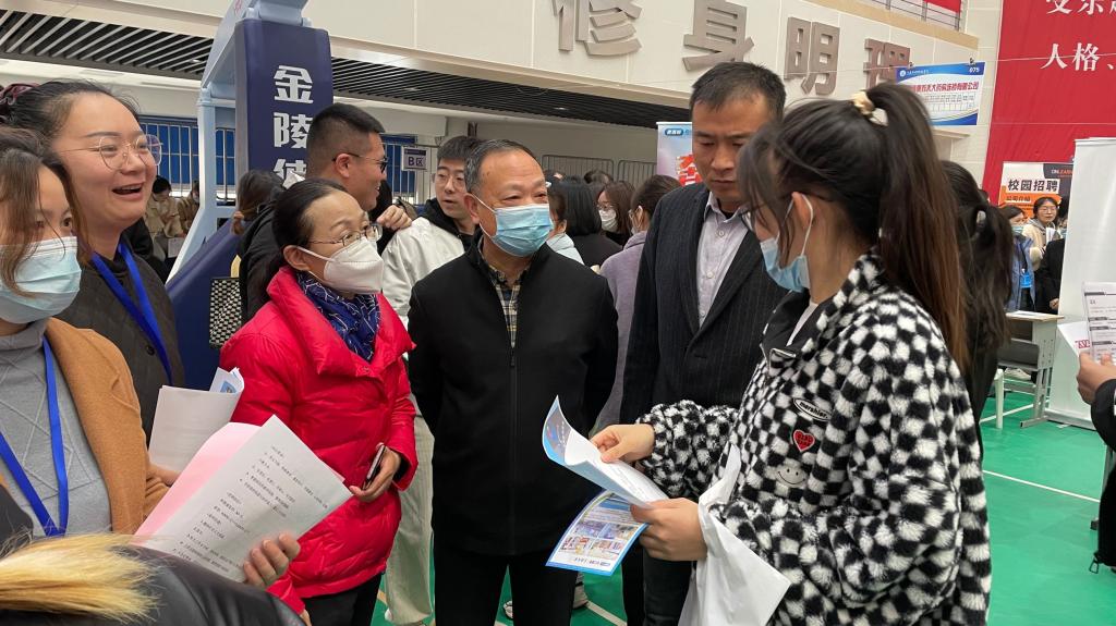 为了帮助毕业生解决实际困难,指导他们求职,我院关工委主任王朝、副主任易军、关工委秘书长杨海涛和多位委员早早地来到招聘会现场,全程驻场对毕业生进行择业指导。