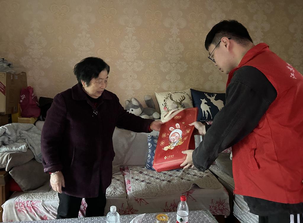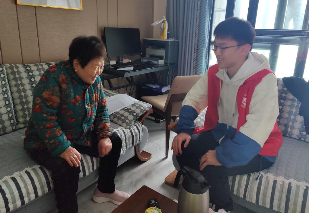十名志愿者按两人一组分为五组,在社区负责人的带领下走访了十几户高龄老人家庭看望高龄老人,给他们送礼品,与他们聊天,为他们捶背,了解老人的生活情况和需求,并进行登记,给高龄老人带去关爱和温暖。在此同时,我们也体会到了老人对我们的浓浓的热情。