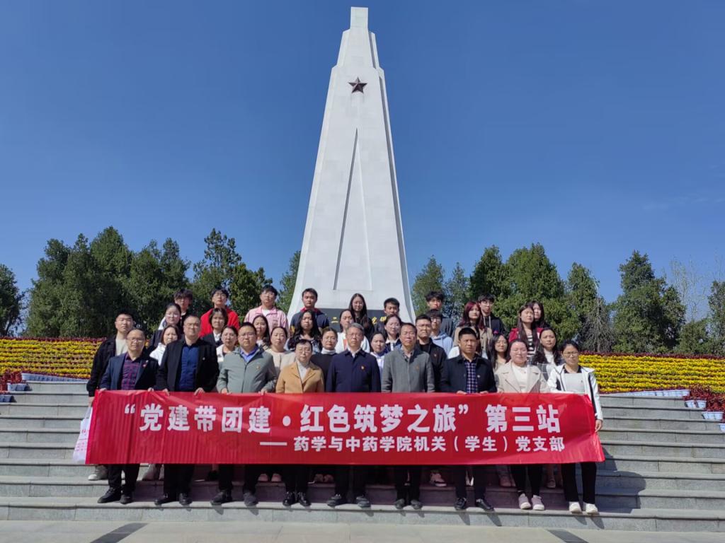 为弘扬爱国主义精神,传承革命先烈的优良传统,药学与中药学院机关(学生)党支部于4月2日前往淮安市刘老庄八十二烈士陵园开展“党建带团建•红色筑梦之旅”主题党日活动,校党委委员、组织部部长夏前正,机关(学生)党支部全体党员以及团学干部共同参加本次活动。