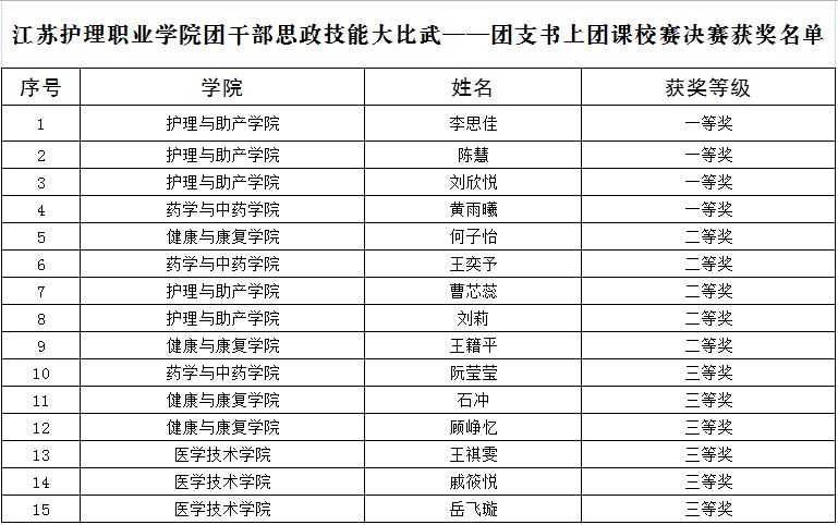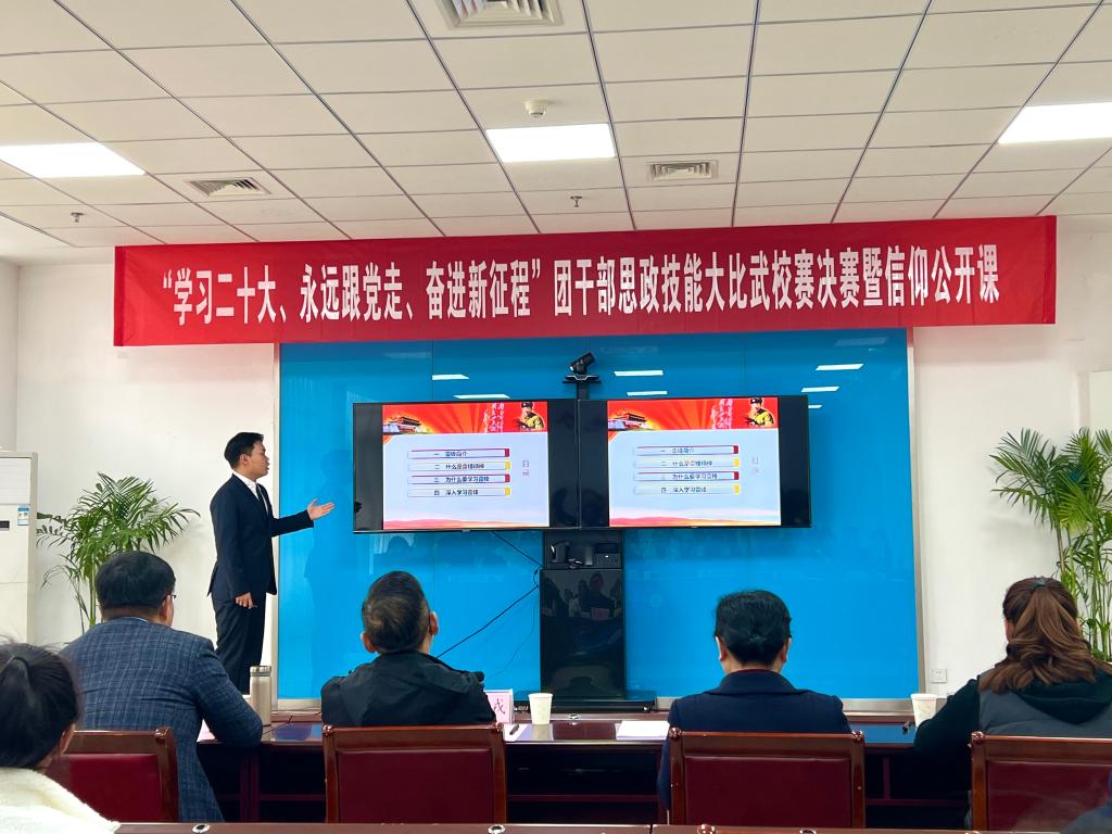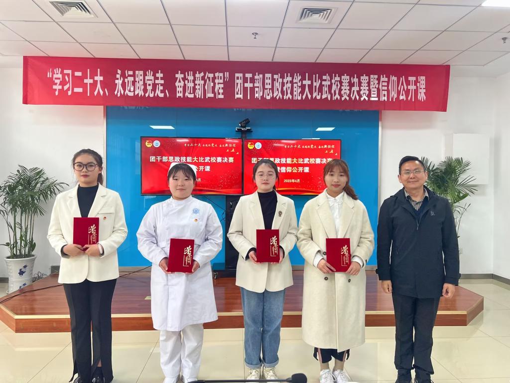 为进一步聚焦思想引领主责主业,团结引领团员青年坚定信念跟党走,勇做走在新时代新征程奋进者,4月24日下午,校团委在大学生活动中心102会议室举办“学习党的二十大精神、永远跟党走、奋进新征程”团干部思政技能大比武——团支书上团课校赛决赛。学生工作部部长丁善戎、护理与助产学院行政负责人林永滔、药学与中药学院党总支副书记赵巧红、校团委书记童申、医学技术学院学工办主任陈颖、健康与康复学院学工办主任杨海涛、马克思主义学院教师朱春花受邀担任决赛评委。