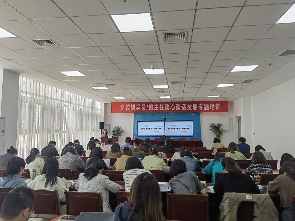 为推动辅导员队伍建设,提升辅导员谈心谈话的业务能力,2023年4月20日下午,在大礼堂一楼视频会议室,学生工作部大学生心理健康教育中心邀请河海大学副教授、心理中心主任刘取芝博士开设《遇见·同行·共创——高校辅导员谈心谈话技能》专题培训。学生工作部部长丁善戎主持,学生工作部副处长许步亮,二级学院辅导员、心理中心专职教师和部分班主任参加了培训。