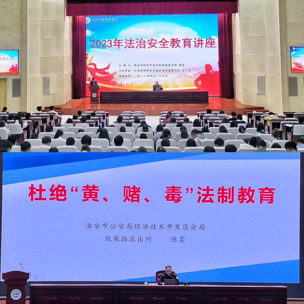 为进一步提升beat365师生员工的法治观念,有效预防违法犯罪案件的发生,4月26日,校应急安全保卫处特邀淮安市公安局经济技术开发区分局枚乘路派出所陈震警官走进beat365开展法治安全教育活动。