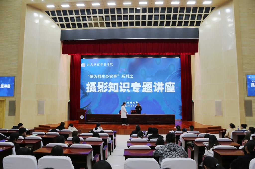 为加强学校新闻宣传队伍建设,提升师生摄影技术和水平,4月27日,宣传统战部开展“我为师生办实事”系列活动之——摄影知识专题讲座,邀请淮安日报社摄影记者赵启瑞介绍摄影知识。校党委委员、宣传统战部部长朱郁草主持活动。