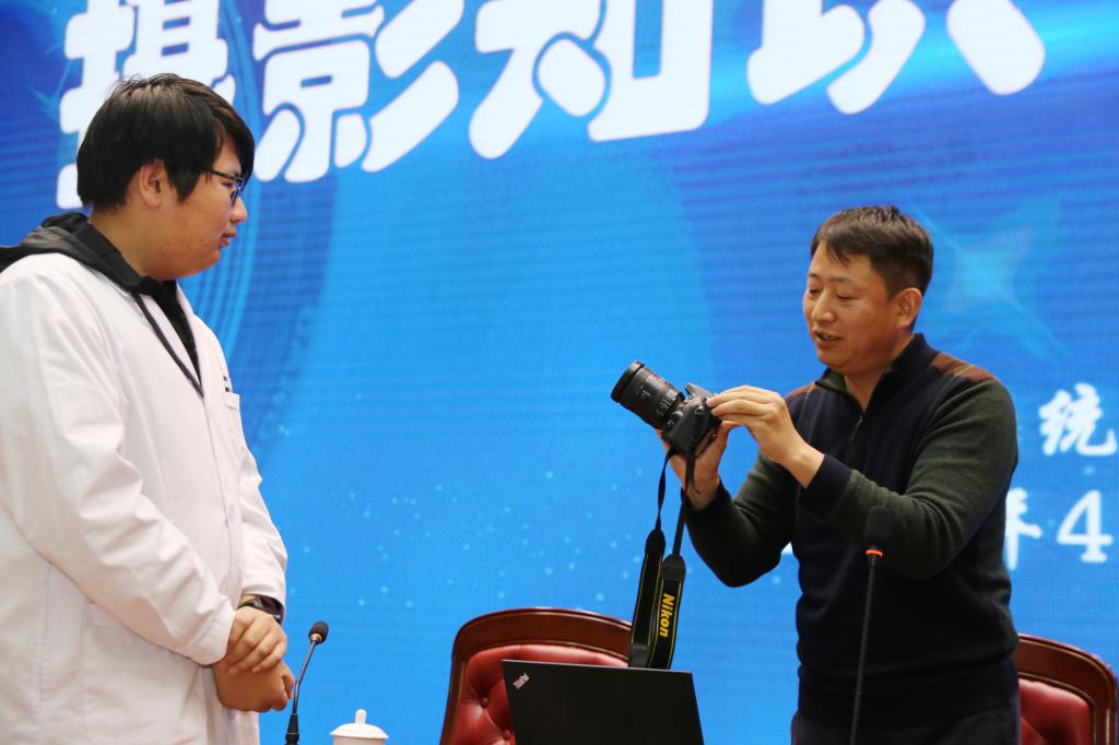 赵启瑞从多年的摄影经验出发,介绍了单反相机和智能手机的拍摄功能,并结合大量照片拍摄实例,从突出拍摄主题、找准拍摄对象、调整拍摄角度、达到拍摄效果等方面为大家深入浅出地讲解了拍摄技巧、细节及注意事项,尤其是对会议摄影、人物摄影等日常工作中存在的具体问题进行专业指导。他建议,与会师生应理论结合实际,养成勤于练习、勤于思考、善于总结的习惯。