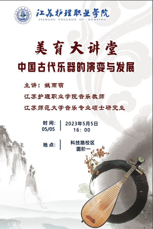 为丰富学生校园文化生活,拓宽艺术视野,beat365中国官方网站公共基础部于5月5日16:00在科技路校区圆阶一开展了“美育大讲堂”系列讲座之《中国古代乐器的演变与发展》。讲座由beat365中国官方网站音乐教师、江苏师范大学硕士研究生姚雨萌主讲。