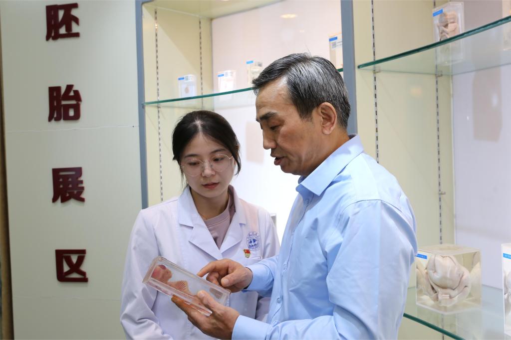 2023年5月11日下午,医学基础部开展了一次别开生面的师德师风专题分享活动。本次活动邀请了解剖教研室退休教师尹甦走进生命科学馆,为大家深情讲述“标本背后的故事”。