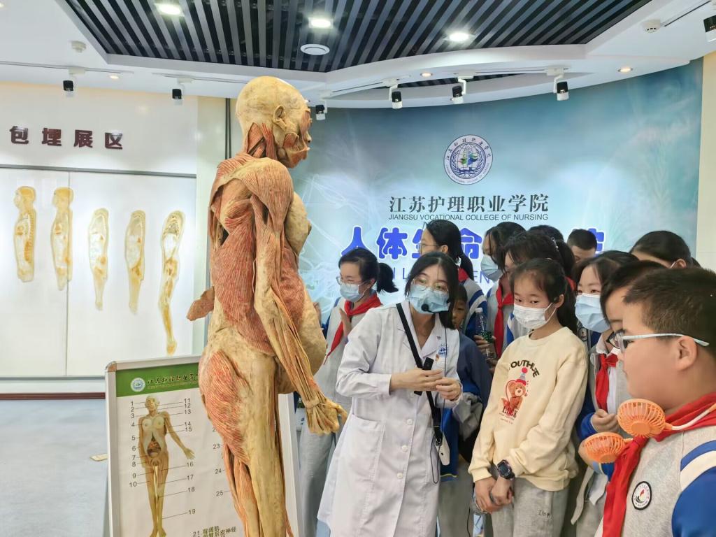 为了激发淮安市中小学生对生命科学和人体奥秘的探索兴趣,体验医护职业的重要性和特殊性,依照《省教育厅等十部门关于做好2023年职业教育活动周相关工作的预通知》中的相关精神要求,beat365中国官方网站医学基础部依托淮安市科普教育基地--人体生命科学馆、智慧医护实训基地开展科普教育宣传活动。2023年5月14日下午,在医学基础部科普团队的组织下,淮安市天津路小学六年级(6)班的同学们走进了生命科学的科普课堂,开启了一场奇妙的人体奥秘探索之旅和医护职业体验之旅。
