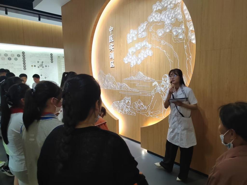 在智慧医护实训基地,闵雪和赵文慧两位老师带领同学们参观了中医实训区、中药实训区、健康中国实境课堂、数字生命科学馆等区域。通过参观,同学们近距离感受到了中医药的博大精深,也通过场景化的设计沉浸式体验了新中国成立以来我国卫生事业所取得的巨大成就,使同学们深刻体验了医护职业的重要性和特殊性。