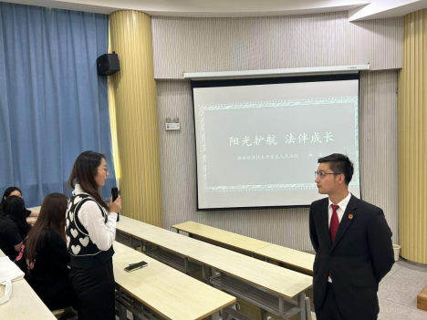 为不断深化普法教育,提高同学们法律意识和安全意识,近日,医学技术学院机关(学生)党支部和“一站式”学生社区党支部共同开展“阳光护航 法伴成长”法治文化节主题讲座,淮安市经济技术开发区刑庭法官助理熊进老师受邀主讲。医学技术学院机关(学生)党支部、“一站式”学生社区党支部、各班级学生代表和全体辅导员参加。