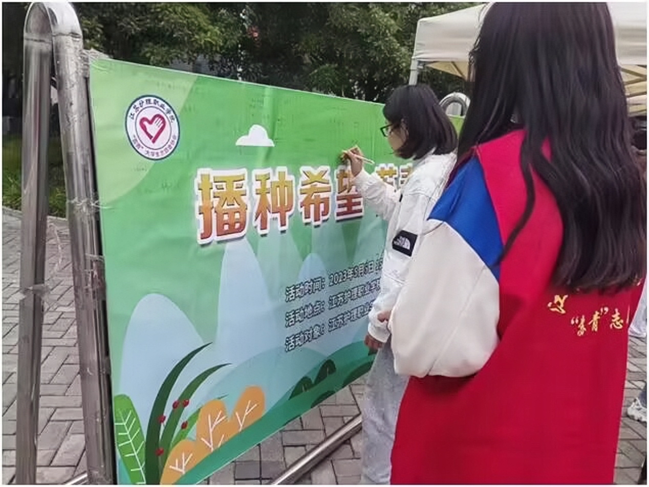 植一抹绿色,染一片生机。此前微博积累水滴量满10的同学可DIY干花书签,在文字与自然的碰撞中,追寻诗和远方。待后期水滴量足350滴或坚持微博带标签打卡满10天,参与同学可于每周日领取绿植种子。最后,志愿者号召同学们在海报上签名写下绿色环保低碳宣言。“今天的我们比历史上任何时期都更懂得绿的价值”,植此青绿,更是将生态文明理念植入心中。