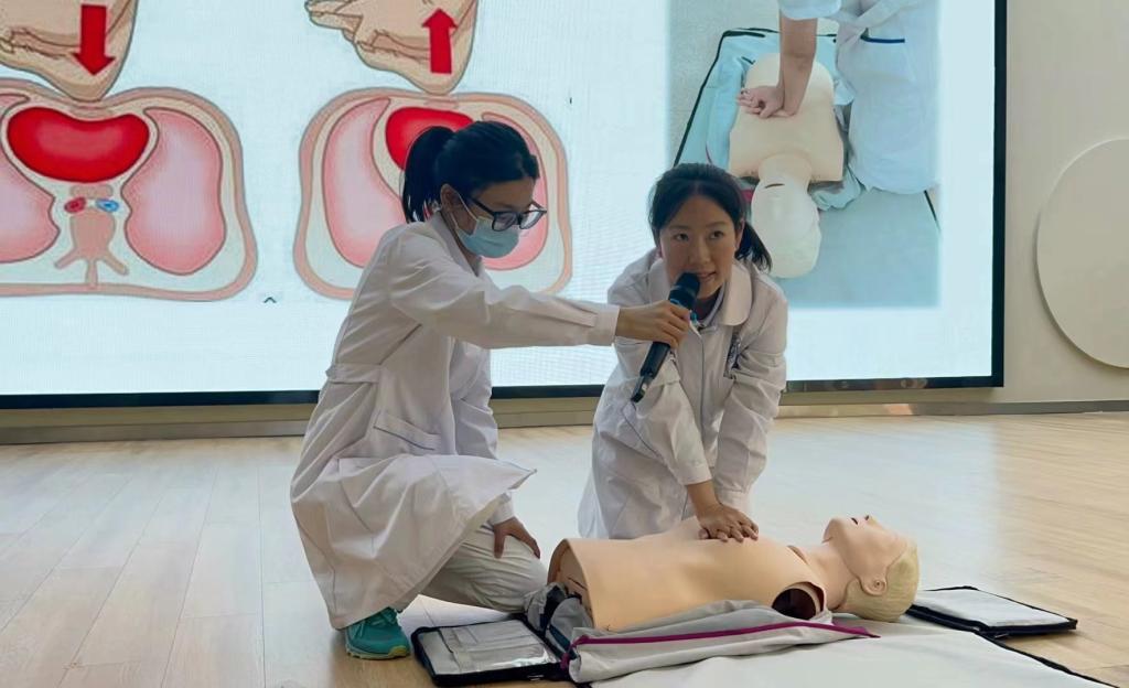 赵蓓蓓老师详细地讲解了心肺复苏知识的要点操作,随后现场为大家展示了胸外按压、人工呼吸等心肺复苏技术手法,告知大家遇到突发事件,如何第一时间作出反应,如何抓住宝贵的急救“黄金4分钟”,并提醒大家要根据被救者的实际情况进行施救,避免造成二次伤害。