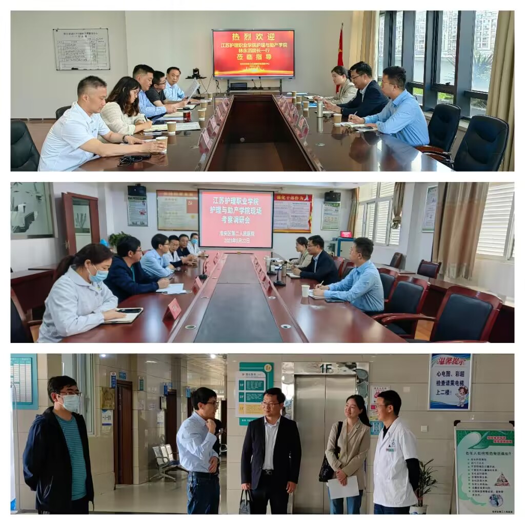 为贯彻落实“访企拓岗促就业”专项行动相关要求,进一步加强与医院深度合作,开拓更多就业岗位,服务毕业生高质量就业,5月22-24日,护理与助产学院副院长林永滔(主持工作),护理与助产学院党委副书记、副院长侯继丹一行分别前往淮安市园区卫生健康管理服务中心、淮安区第二人民医院、淮安市第一人民医院分院和淮安市城南中医院开展访企拓岗工作,就生态新城周边医院对护理、助产专业人才的需求状况、人员所需岗位核心能力、学院专业建设等方面展开深入交流。市园区卫生健康管理服务中心、生态新城福地路社区卫生服务中心、淮安光明眼科医院、淮安佳妍美容医院、市第一人民医院分院、市城南中医院等领导出席了座谈活动。