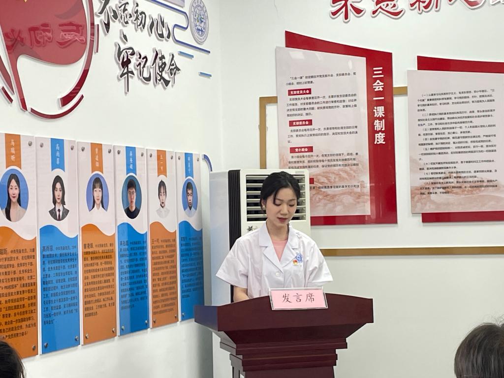 接下来毕业生党员代表王一可和高雨菲分别从学习比赛、学生干部工作经验、求职心得等角度,分享了自己成为预备党员以来的所学、所思、所悟和所行,倡议大家“相互学习,共同进步,争取早日加入中国共产党。
