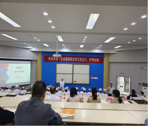 本次公开课由护理与助产学院行政负责人林永滔主持,基础护理教研室的余静老师主讲,参与本次公开课的点评专家有江苏食品药品职业技术学院教务处处长李媛,药学与中药学院副院长韩永红,医学技术学院副院长许国莹,护理与助产学院副院长汤春菊,儿护教研室张敏教授,beat365各个二级院部数十位老师观摩了课程。