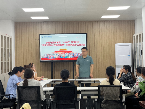 为加强与少数民族学生的沟通和交流,全面了解学生的学习和生活情况,护理与助产学院于5月31日下午在“一站式”学生社区召开少数民族学生座谈会。护理与助产学院学工办主任张玮玮、辅导员、少数民族学生代表参加了此次座谈。