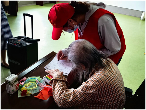 活动期间,志愿者们陪伴老人们谈心拉家常,帮助老人们整理房间、打扫卫生,了解他们的日常生活起居、饮食以及身体健康等情况,向他们科普医疗小知识,如:要遵医嘱吃药,适当运动散步等。志愿者们与老人们一起折纸,用大手和小手创造出美丽的图案。看到老人们脸上洋溢着温暖的笑容,志愿者们也被深深的感染。活动快要结束时,志愿者们与老人合影留念,整个敬老院洋溢着温馨、祥和的气氛。