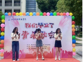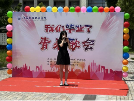 毕业歌会同学们以动人的歌声回忆大学生活的点点滴滴,寄托毕业生对母校的感恩和惜别之情。歌会在《陪你度过漫长岁月》中拉开帷幕。青春不被定义,石博文同学用《形容》来描述生活的点滴,酸甜苦辣咸皆是人生味道;大学应该有场青涩的恋爱,胡锦程同学为大家带来一首《恋爱告急》,现场掌声连连;面对风雨,勇敢前行,马杨洋、钮笑缘、王祺雯三位同学,告诉我雨过天晴,《彩虹》终会出现......活动现场,辅导员老师宋卫佳和同学们一起合唱影视歌曲《此生不换》,告诉同学们珍惜的重要意义,珍惜眼前人,走好眼前路。