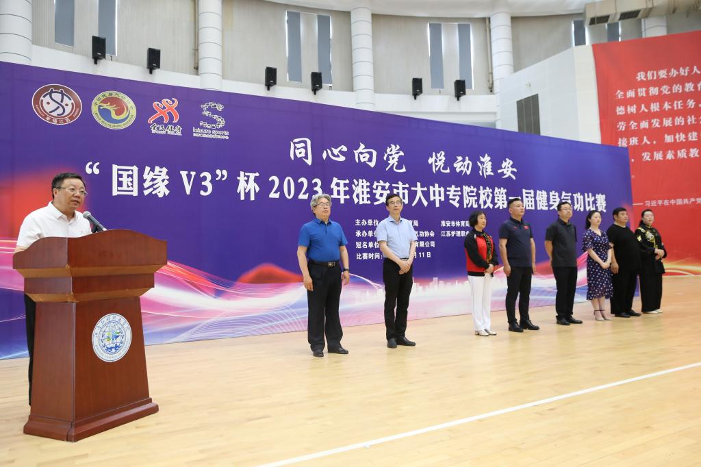 6月11日,“同心向党 悦动淮安”国缘V3杯2023年淮安市大中专院校第一届健身气功比赛在beat365隆重举行。校党委委员、副院长史亚明、市教育局规划处处长杨继超、市体育局群体处处长王旭红、江苏今世缘酒业有限公司淮安大区政企部经理陈娟、市健身气功协会会长钱爱成、市健身气功协会常务副会长于永恒、副会长万瑜、贾莉莉出席开幕仪式,开幕式由公共基础部党总支书记吴秋霞主持。