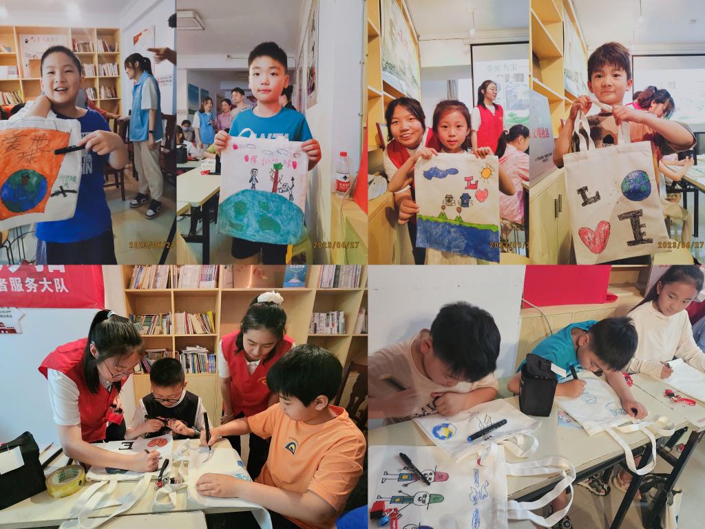 最后,“天南星”志愿者带领小朋友用彩色的画笔在白色帆布袋进行环保手袋设计,画出自己心目中的美好世界。志愿者们通过开展环保手袋设计环节,大大提高了社区小朋友的资源回收再利用和变废为宝的环保意识,活动现场友爱温馨、气氛热烈,受到了小朋友和清河路社区负责人的一致好评。