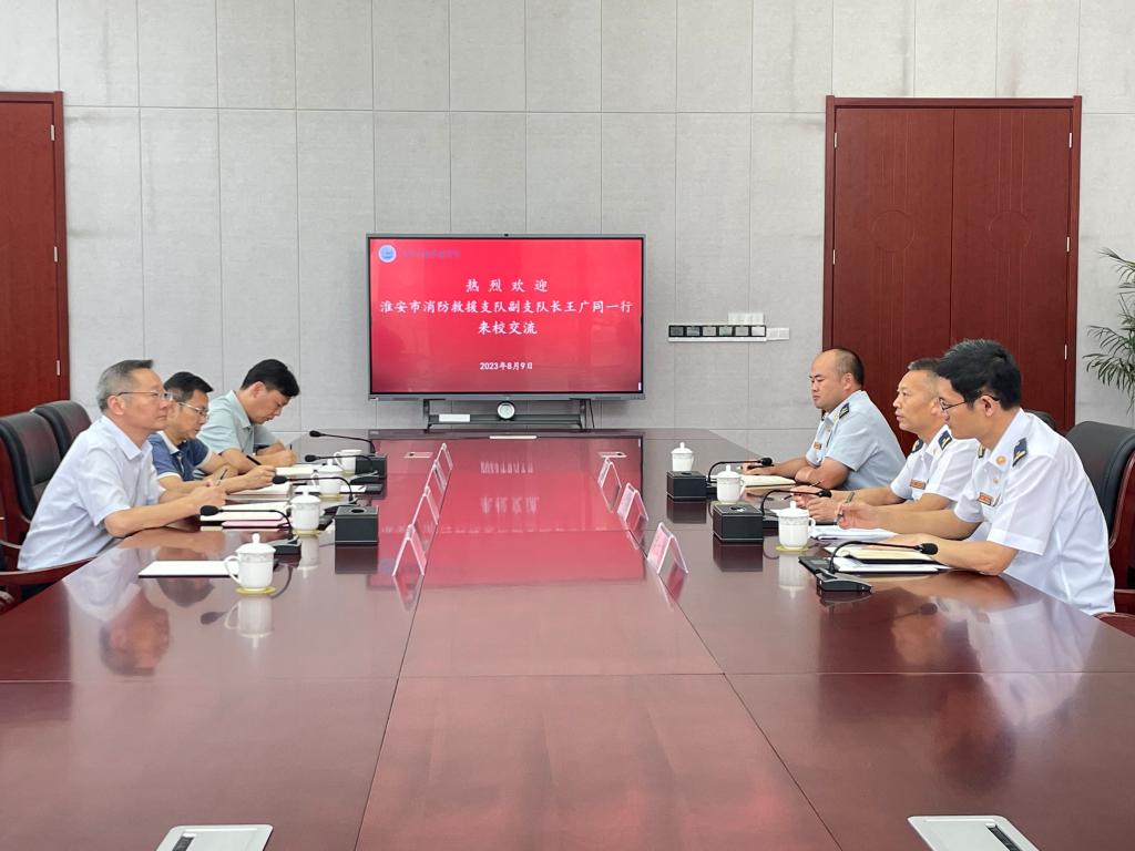8月9日上午,淮安市消防救援支队副支队长王广同一行莅临beat365指导交流消防安全相关工作,beat365党委委员、副院长陈鸣鸣,学工部、安全保卫部、教务处负责人参加了此次活动。
