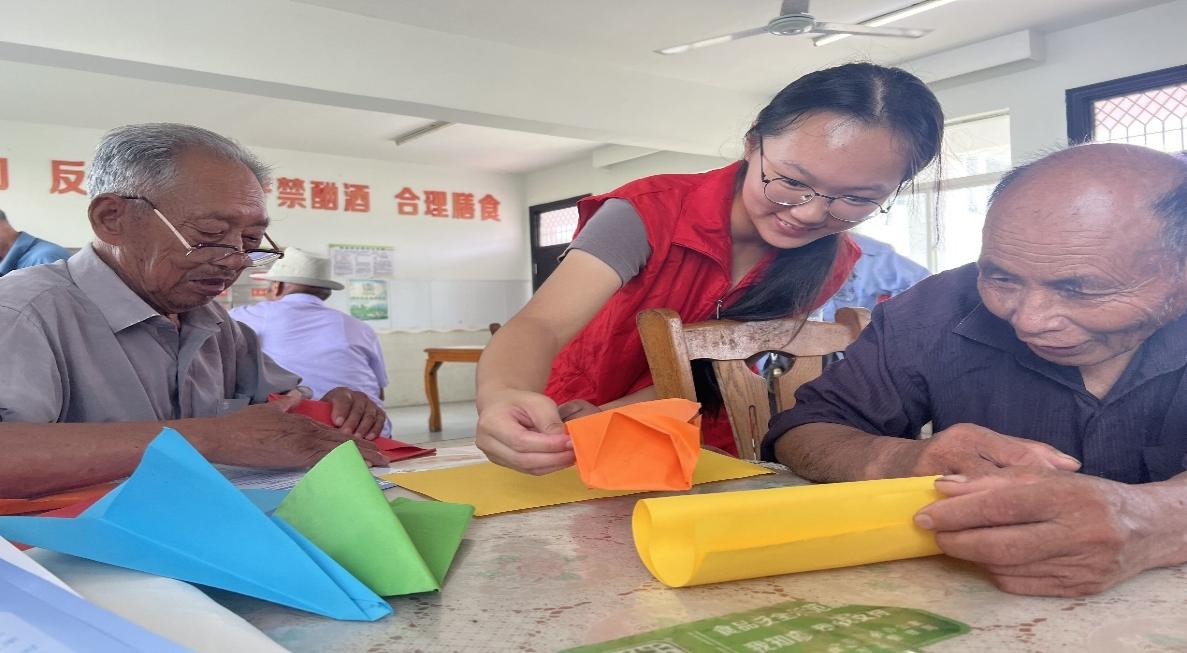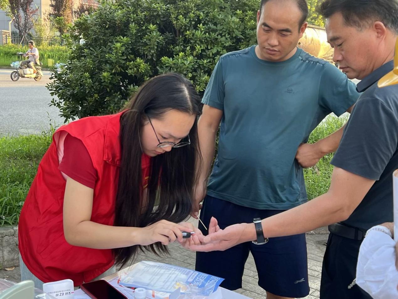 送医下乡惠群众,义诊入村暖民心。为了进一步将“我为群众办实事”落到实处,南丁格尔志愿护理服务队面向村民开展爱心义诊和健康科普活动。内容主要包括测血糖、量血压、健康知识宣讲。在测血糖、量血压过程中,崔萱与志愿者们为居民耐心细致地分析病情,讲解注意事项、合理饮食、合理用药等常识。在健康知识宣讲中,我院助产专业带头人崔萱为居民宣讲高血压、高血糖等慢性病的预防及日常护理措施,引导广大居民做好家庭保健;面向妇女群体开展妇科知识科普,提高妇女群众的生理卫生知识水平,让女性群体更深入地了解妇科病日常预防与健康筛查的重要性。同时,为了更好地引导群众做好健康管理,志愿者们为居民讲解并发放自制的健康手册,内容涉及“防艾”“医疗惠民政策”“健康生活方式”“手足口病”,并在宣讲过程中积极宣传中医药养生知识,为广大群众做好疾病预防、降低发病率提供了生活指南,提高了居民对医疗资源的合理选择意识和各类利好政策的受益程度。同时团队成员为群众展示太极拳,与老人折纸、合唱《强军战歌》《让我们荡起双桨》等歌曲,丰富老人生活。