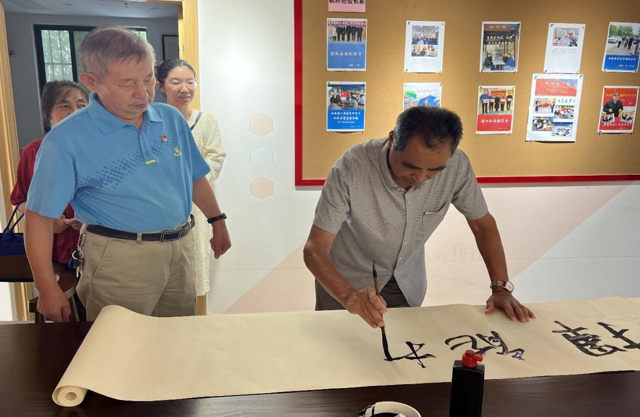 与国旗同框,向祖国告白。团队成员热情邀请村民一同参加“我与国旗合个影”活动,他们脸上洋溢着自豪与喜悦,手中挥舞着鲜艳的五星红旗,通过与国旗合影表达对伟大祖国最真挚的热爱和美好的祝福。并面向儿童群体讲述国旗的由来和象征意义,激发他们的爱国情怀和使命担当,鼓励小朋友们要认真学习,报效祖国。在写毛笔字活动中,一名退役军人通过书写“听党指挥、能打胜仗、作风优良”这十二个字表达出对党的信任和对祖国的热爱。在活动中,志愿者们通过调研深入了解了国家的发展和人民生活的变化。志愿者宋雨洁表示:从社会的方方面面,我们切实感受到了国家所取得的巨大进步,作为一名大学生,我感到非常自豪。同时我也将认真学习,立大志、明大德,争做一名合格的共产主义接班人。