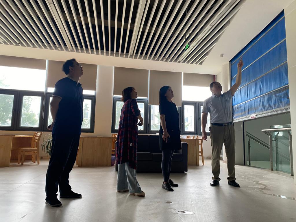 图书馆党总支书记、馆长葛稳罡带领大家重点对图书馆各活动场所、办公区、阅览区、书库等人员密集和安全重点场所进行查看,尤其是对暑期京东校园馆改建区域进行了重点检查,逐一排查馆内各区域消防设施设备、电箱、电闸、插座、线槽等用电设备是否存在隐患;门禁及自助借阅机等设备是否正常运行;自助饮水箱是否清洁消毒等,确保各种设备完好齐全并正常使用,各安全出口、疏散通道顺畅无阻,各公共区域全面消毒,做到安全隐患排查无死角。在本次检查中发现了二楼多处区域漏雨问题,已向后勤保障处报修;京东校园馆门前台阶陡峭,存在安全隐患,针对此问题,已责令经营方用绿植围挡,并设置安全警示牌,以防学生失足坠落。检查后立即填报风险隐患清单,对发现的问题及时上报,明确整改措施和时限,具体责任落实到人。照单管控风险、整治隐患。