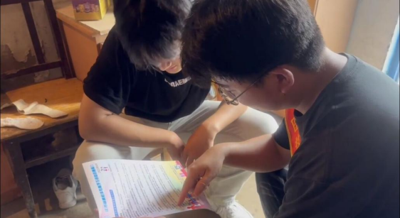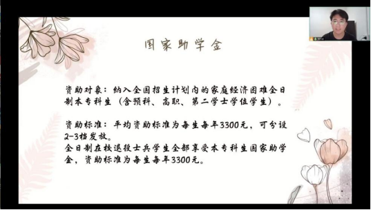 资助宣传回学校。高考结束之际,他回到家乡、回到高中母校“现身说法”,向学弟学妹们介绍自己在国家资助政策帮助下如何安心学习、健康成长。采取多渠道、多形式、多角度的宣传方式,加强“线上”与“线下”联动,将资助政策通过线上宣讲会的形式带回中学母校,向学弟学妹宣传国家和学校的资助政策,全面解读“奖、助、贷、勤、补、减、免、偿”八位一体资助体系。在村委会和高中母校,他将自己绘制的资助海报张贴在宣传栏,进一步扩大资助宣传面。