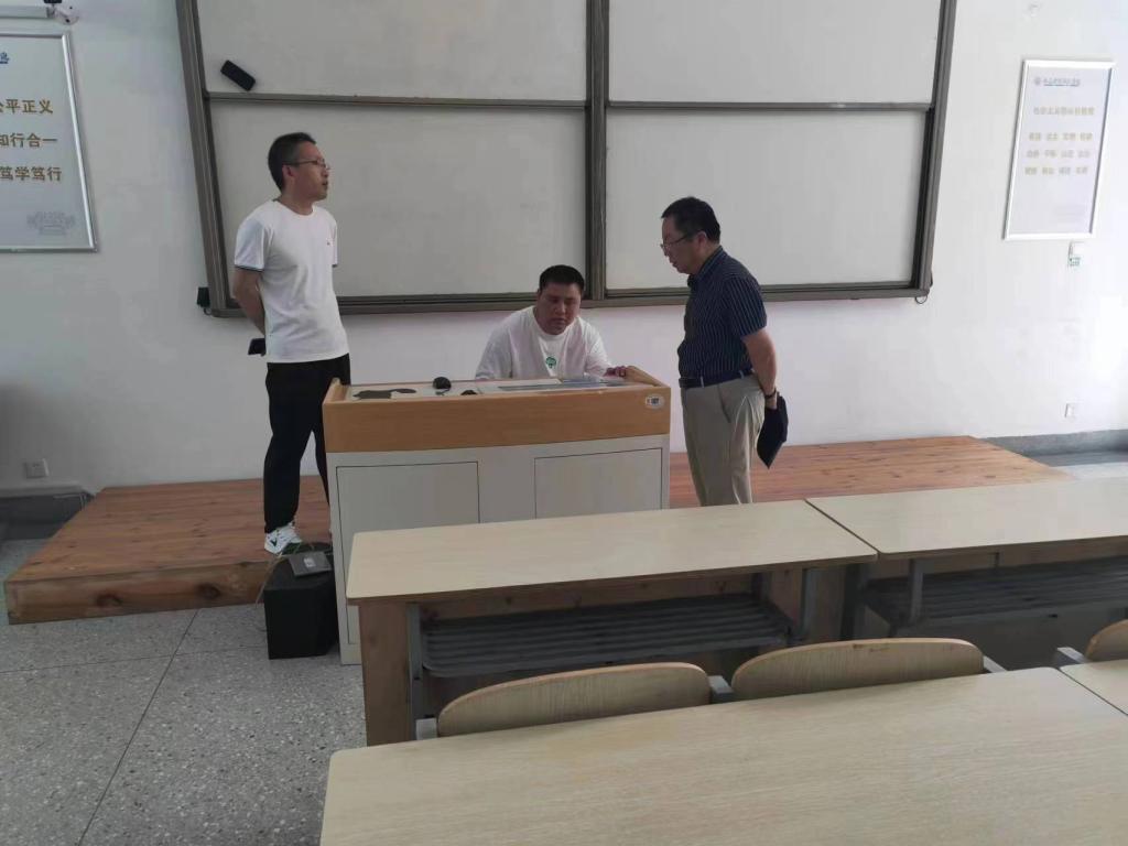 期间,史亚明副院长带领薛继成主任、教务处相关人员、信息化建设管理处工作人员对教学楼进行多次巡查,指出问题所在,给与整改意见,针对智慧黑板和大教室改造出现的部分问题,技术人员加班加点完成,确保次日开学正常运行。
