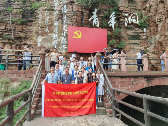 红旗渠,这个位于中国河南省林州市的伟大工程,是新中国成立后林县县委带领人民为了改变当地严重缺水的历史而开展的一项壮丽工程,形成了以独立自主、艰苦创业、无私奉献、团结协作为核心的伟大红旗渠精神。教师们顶着炎炎烈日,跟随着讲解员沿着蜿蜒曲折的红旗渠拾级而上,步行来到了镌刻着“青年洞”三个大字的崖壁前。当年,青年洞曾是红旗渠施工建设难度最艰巨的地段,300多名青年组成凿洞突击队,经过17个月的英勇奋战,才征服了这一天险。青年洞的开凿是青年建设者豪情壮志的奋斗青春的见证,体现了在困难历史条件下,他们不惧艰险、勇挑重任的奉献担当精神。教师们驻足在青年洞崖壁前,每个人的心灵受到了洗礼,思想得到了升华,深刻理解了社会主义是拼出来、干出来、拿命换来的,不仅过去如此,新时代也是如此。